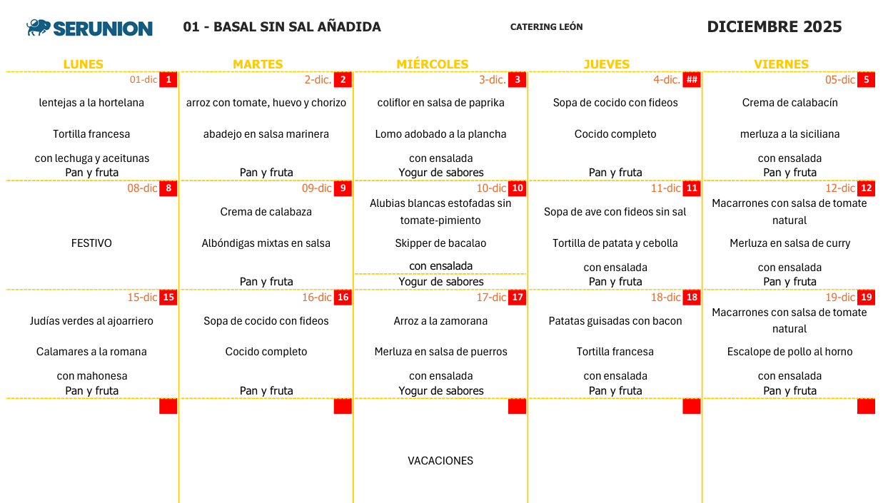 SERVICIOS » MENÚ COMEDOR DICIEMBRE