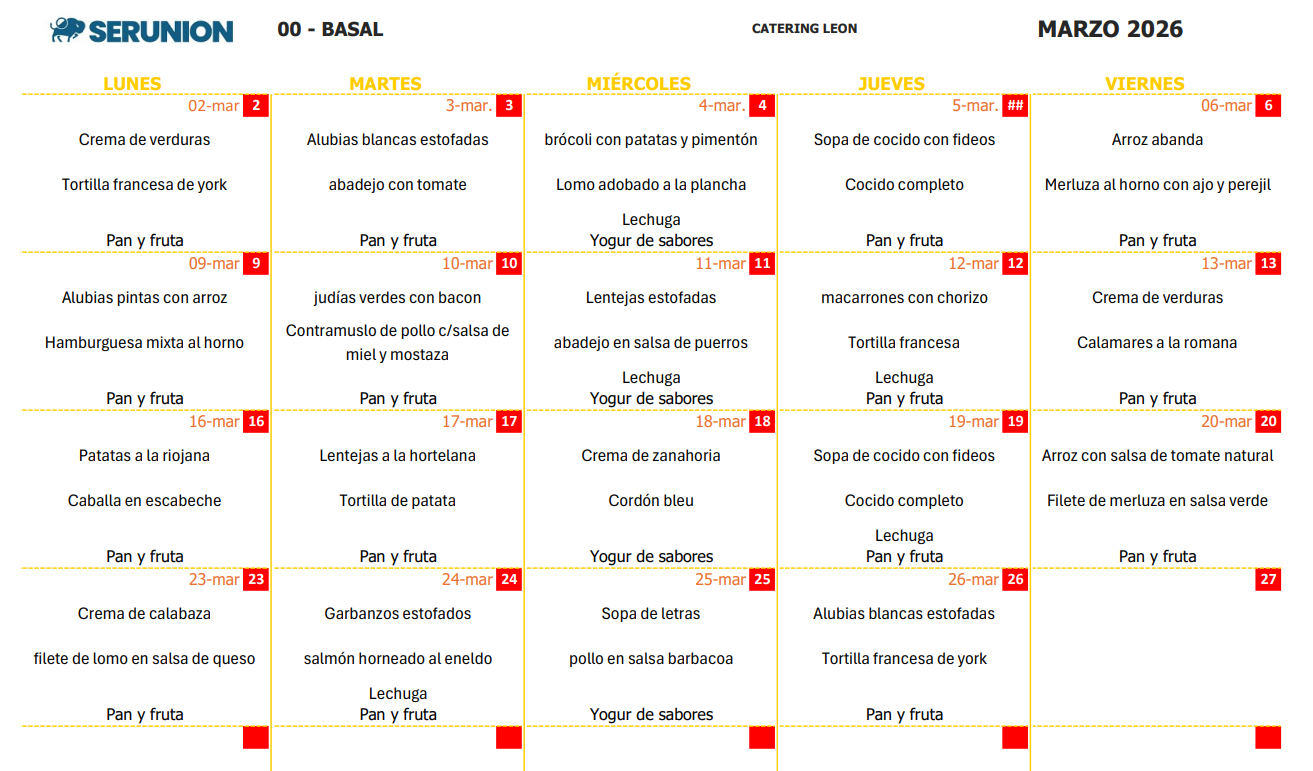 SERVICIOS » MENÚ COMEDOR MARZO 2026