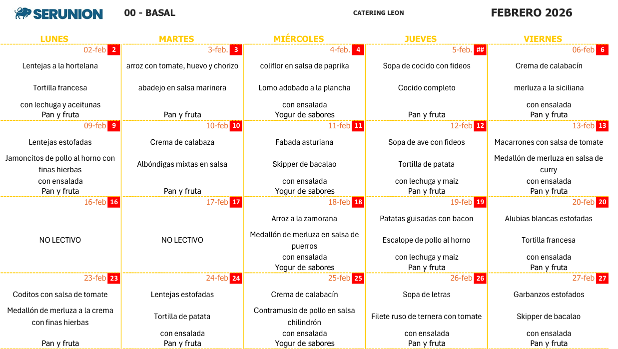MENÚ COMEDOR FEBRERO 2026